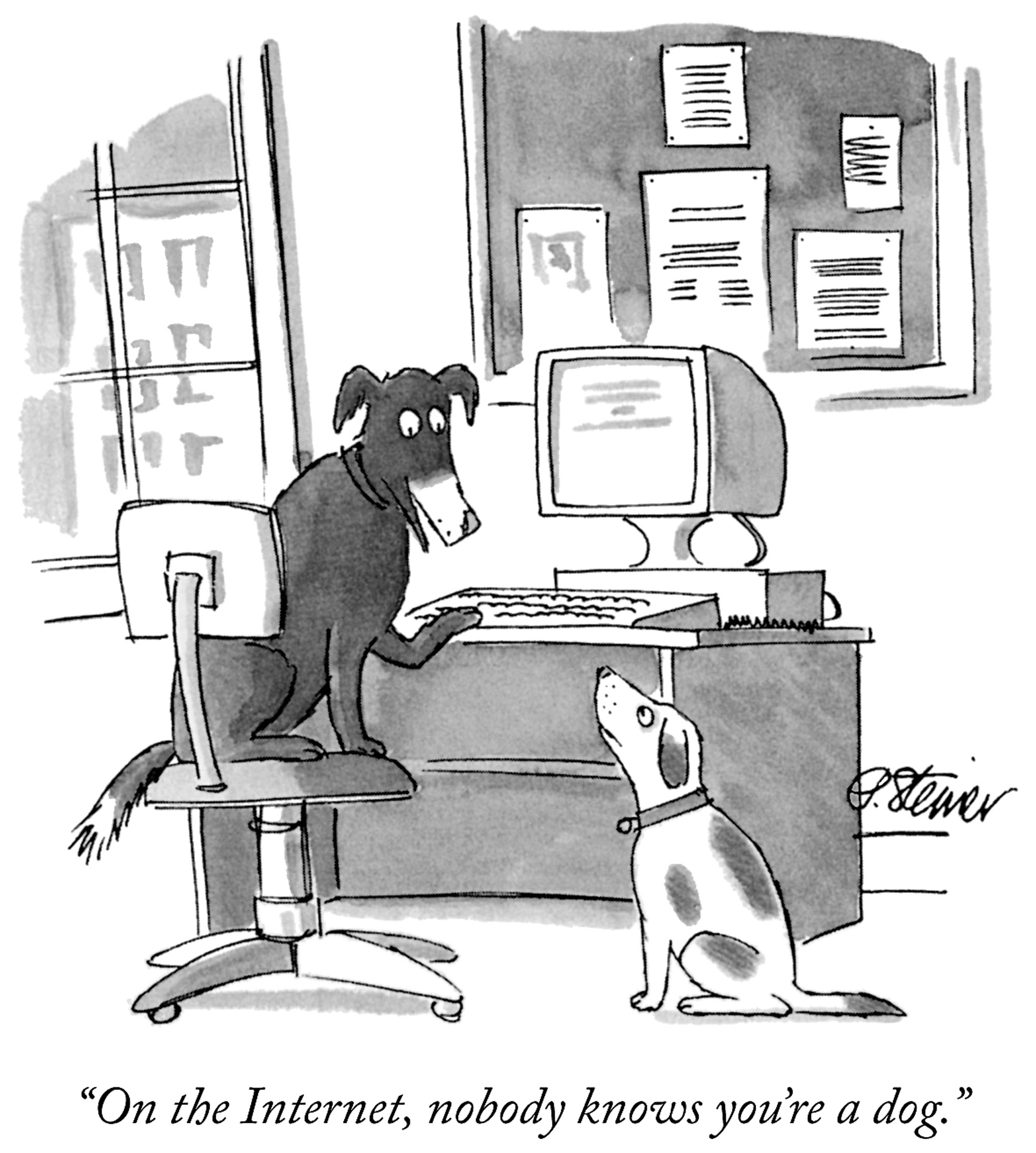 Peter Steiner, On the Internet, nobody knows you’re a dog, New Yorker, 1993