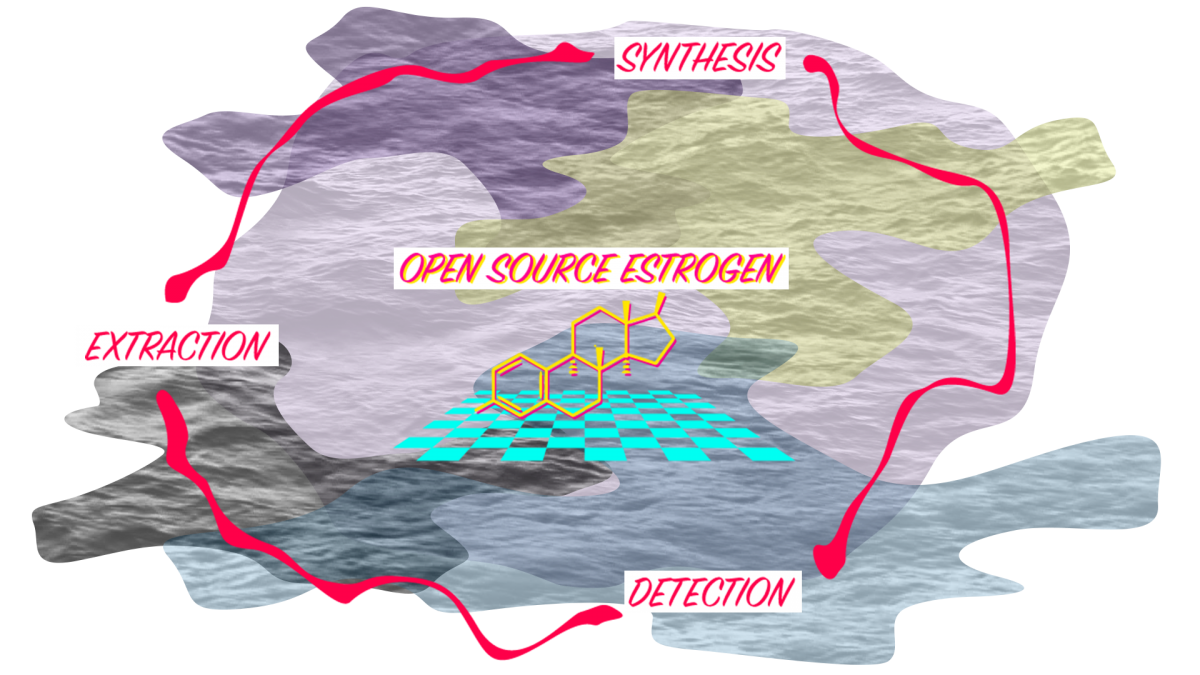 Le projet de biohacking Open Source Estrogen, initié par Mary Maggic, artiste et chercheuse, dont Paula Pin est une des collaborateur..ices, est documenté sur le wiki de Hackteria. Ce projet de recherche conduit le développement d’un oestrogen hack lab, un ensemble d’outils, de protocoles qui visent à étudier les molécules d’oestrogène. Le projet interroge l’éthique derrière l’administration de molécules de synthèse, leur détection et leur extraction. Les outils pensés au sein du projet font opposition à des politiques de contrôle des corps en poussant à l’émancipation de l’industrie pharmaceutique.